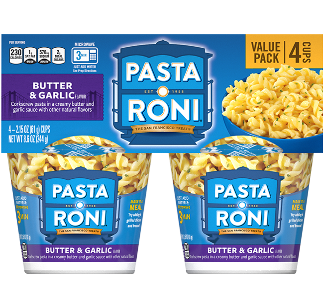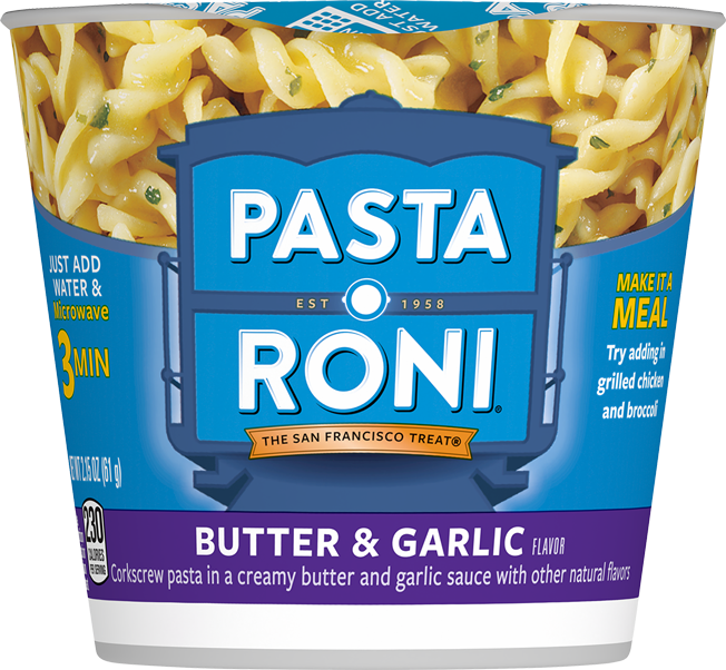 Enjoy our pasta blended with the flavors of butter and garlic on-the-go! Pop one of our single serve cups into the microwave and you’ll have the perfect snack or a light lunch in just 3 minutes!